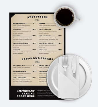 - меню и листовки;